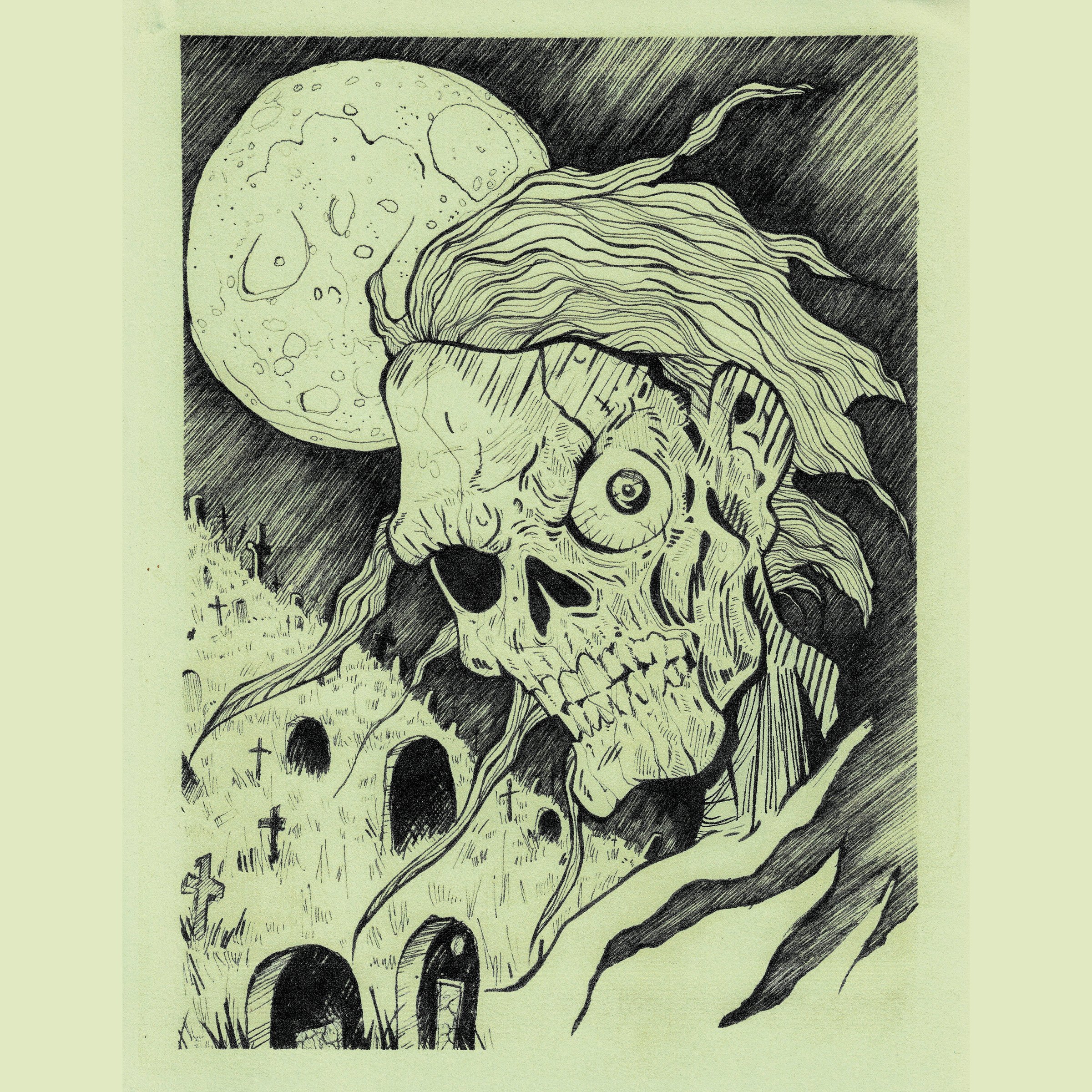 Kept this Bernie Wrightson tribute piece traditional. Ink drawing printed on a colored textured paper then scanned back in for cleaning via Photoshop. I was going for that old school Creepy and Eerie Magazine look.